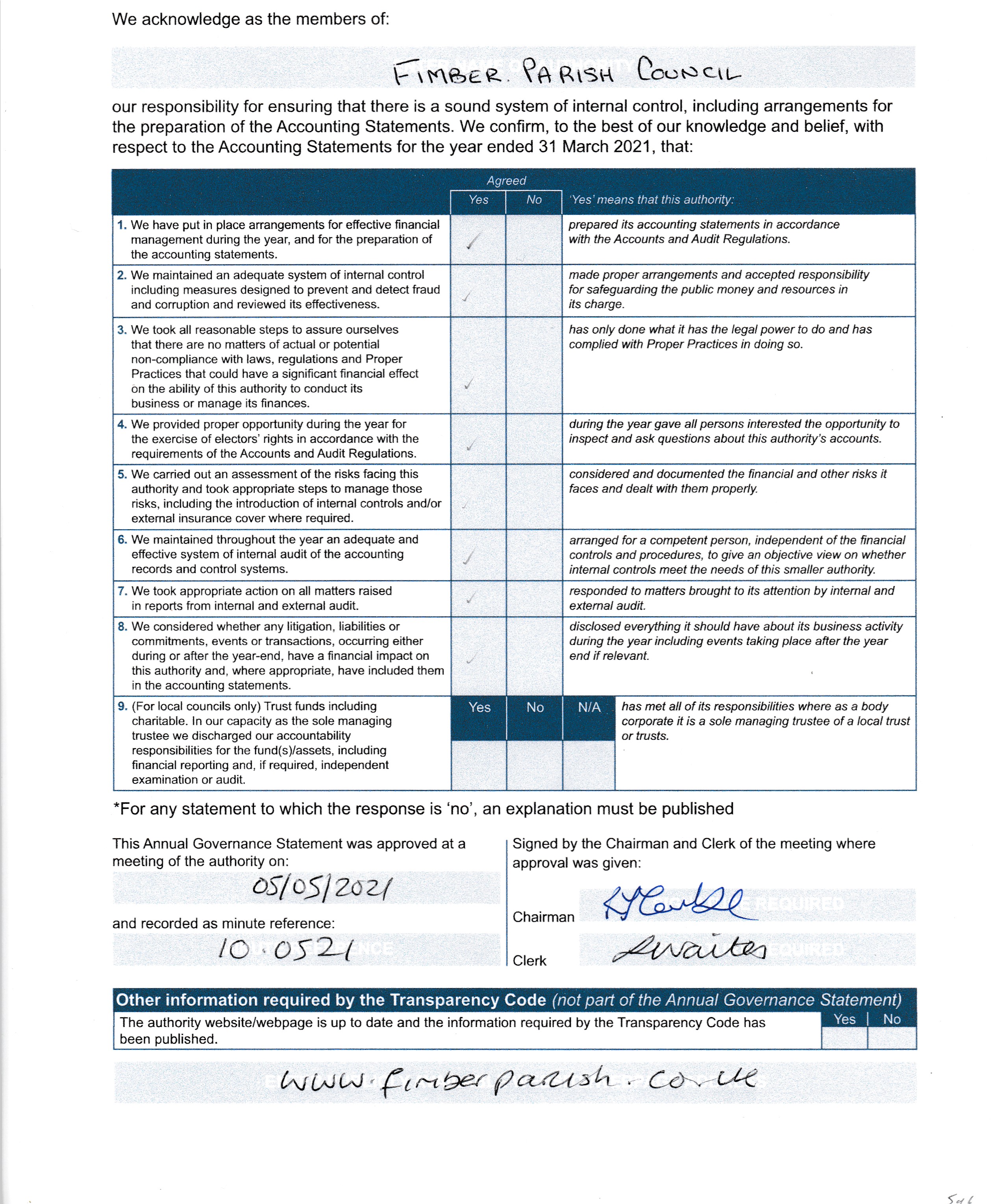 This page contains detail about the Audit of Fimber Parish Council finances.